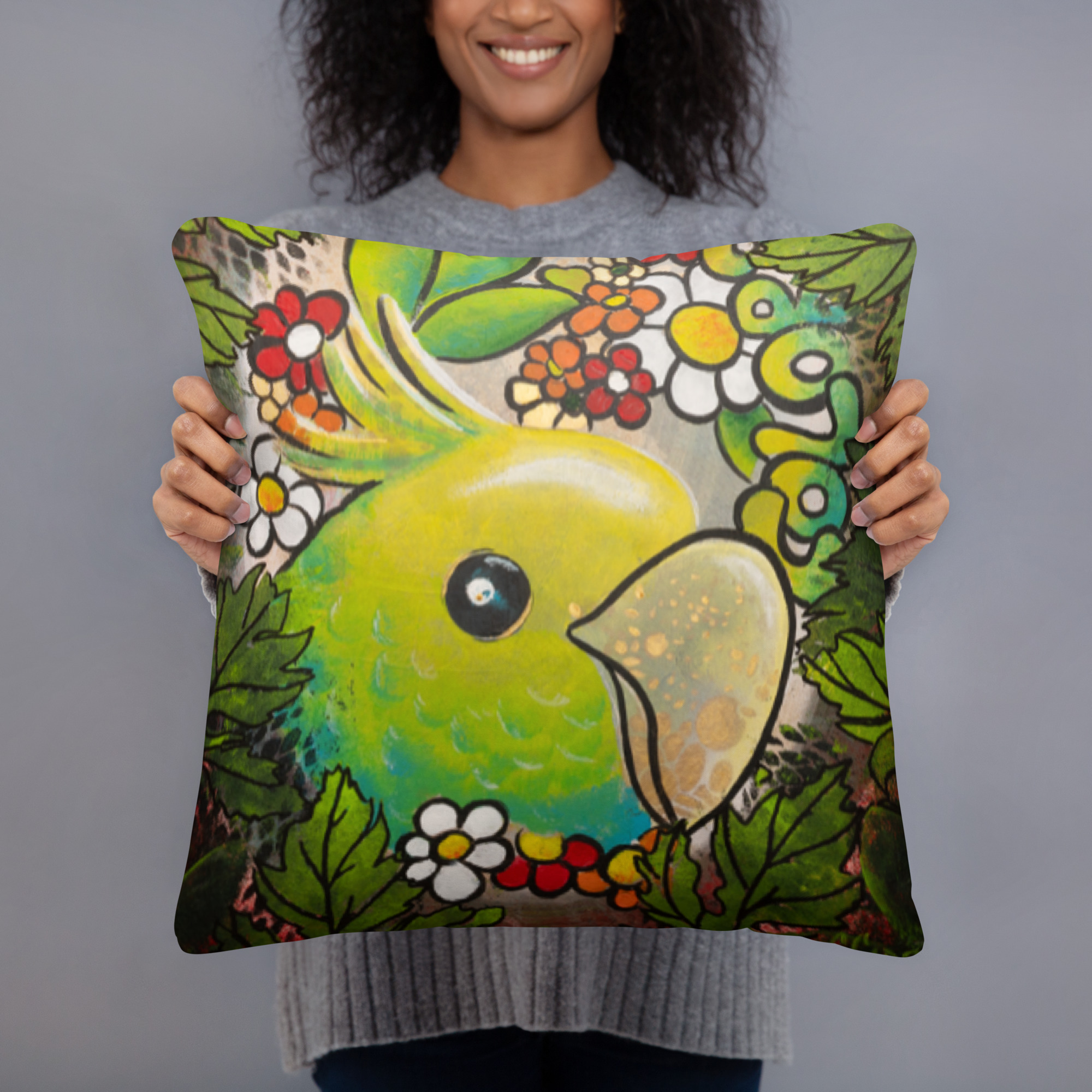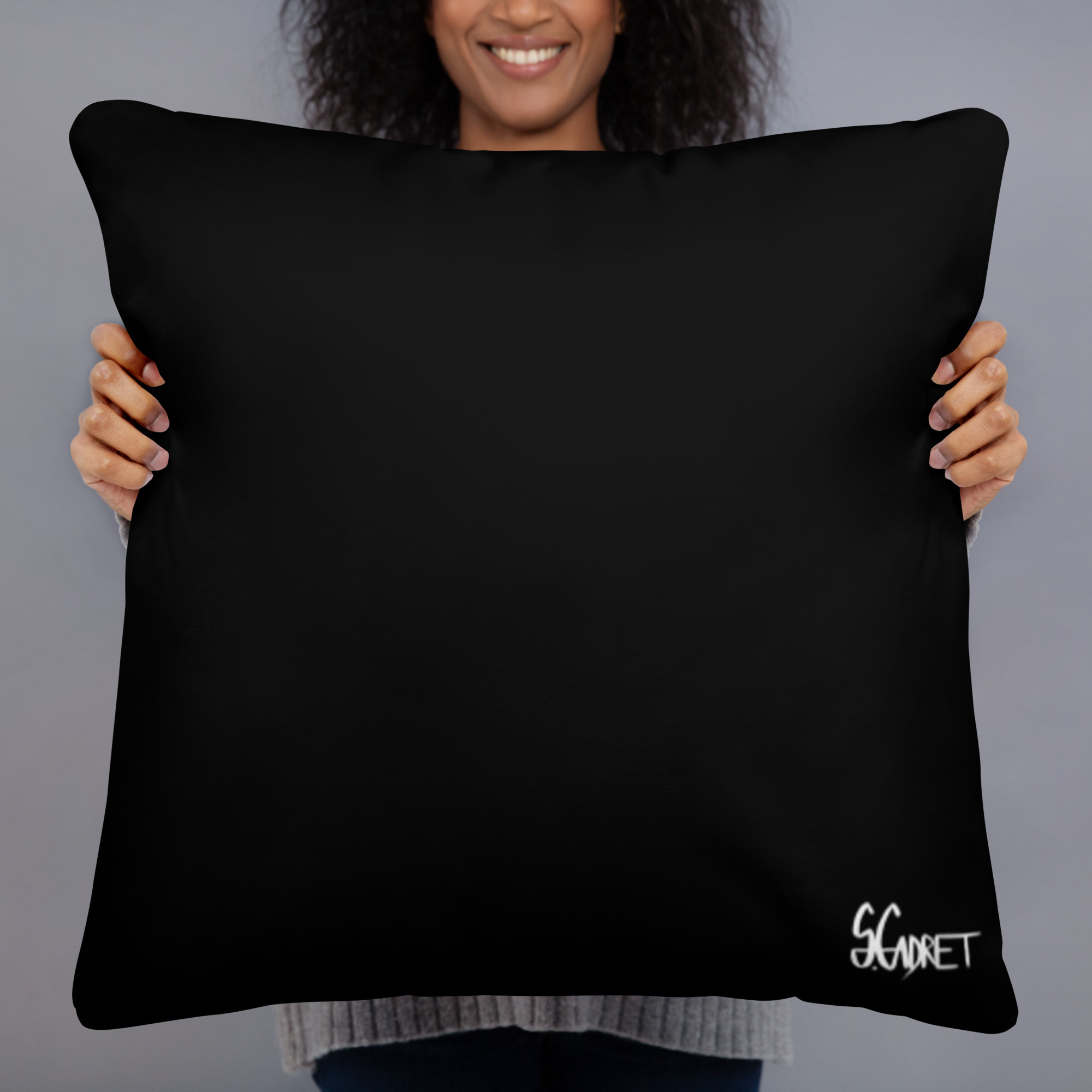 Le recto du coussin présente une magnifique œuvre de S. Gadret alors que le verso est en couleur unie.